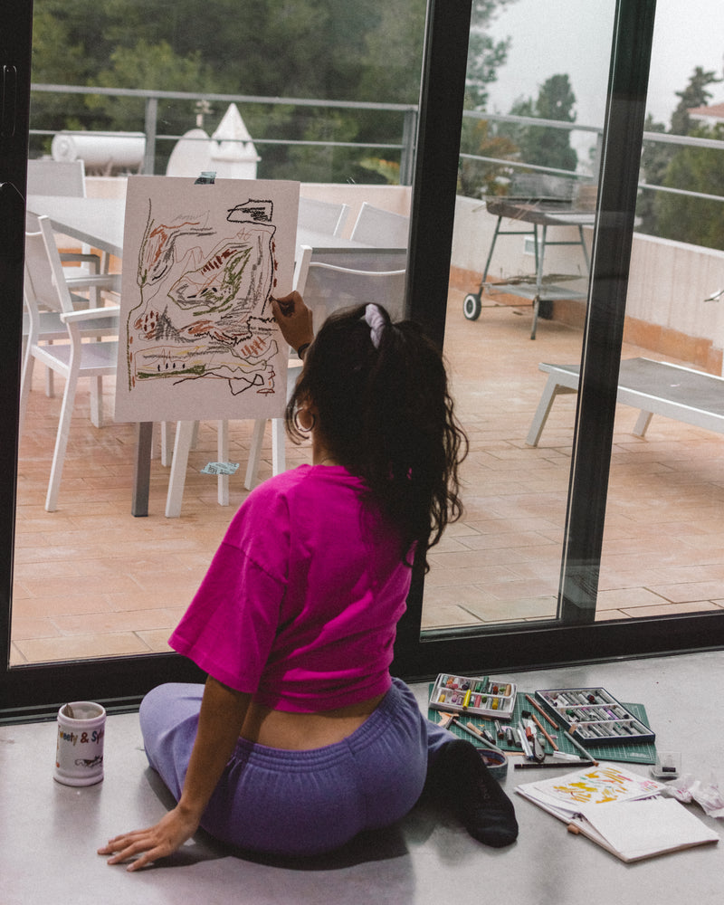 After travelling and owning a fashion brand for a couple of years , she found her creative home in Spain between the sea and the mountains .