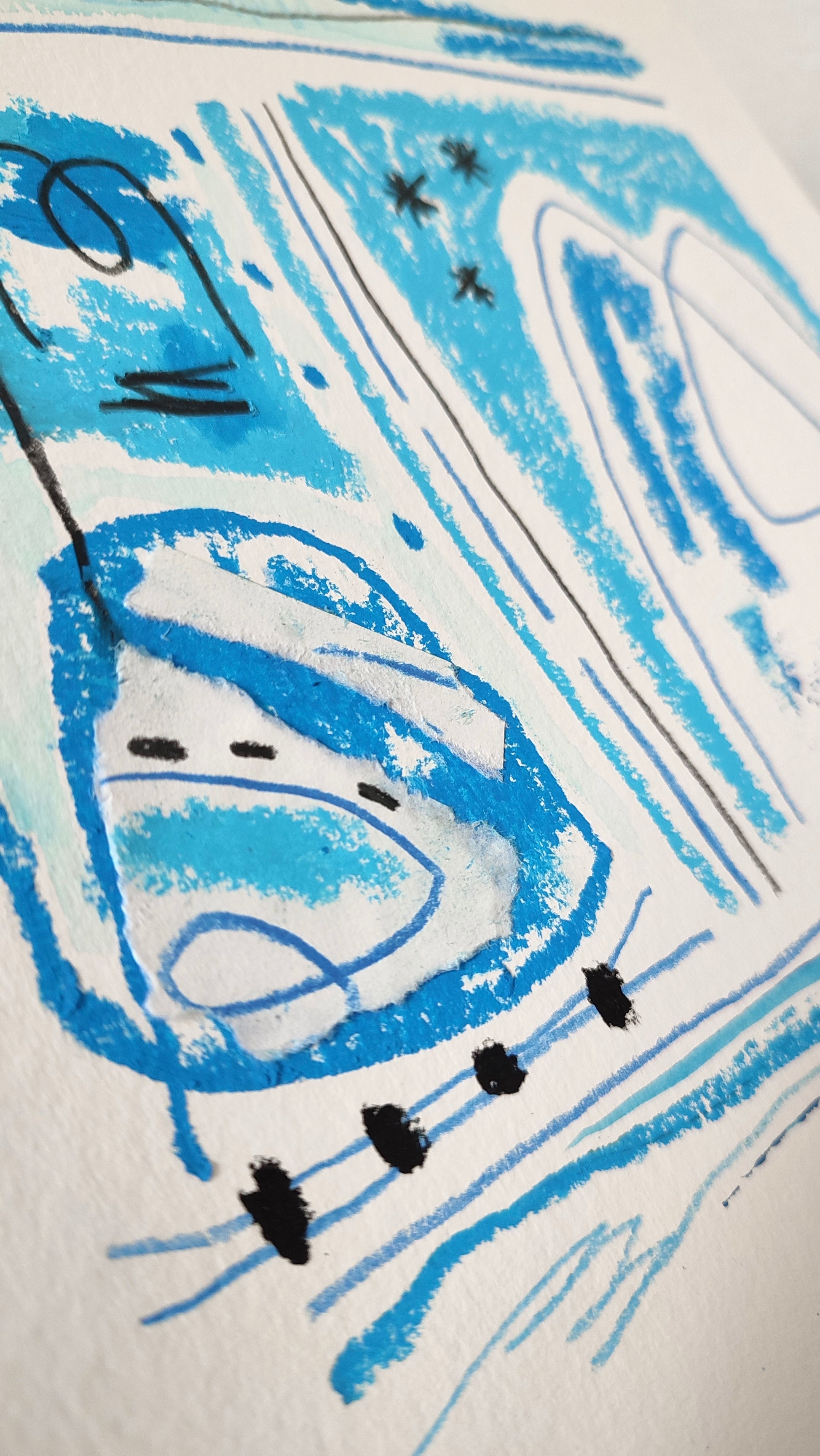 Mixed media on 265 g/m2 Hahnemühle Bamboo Paper .
