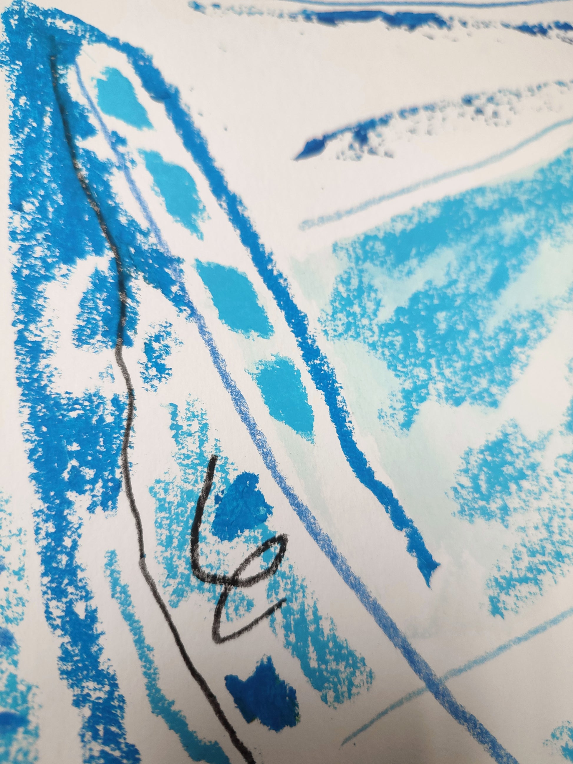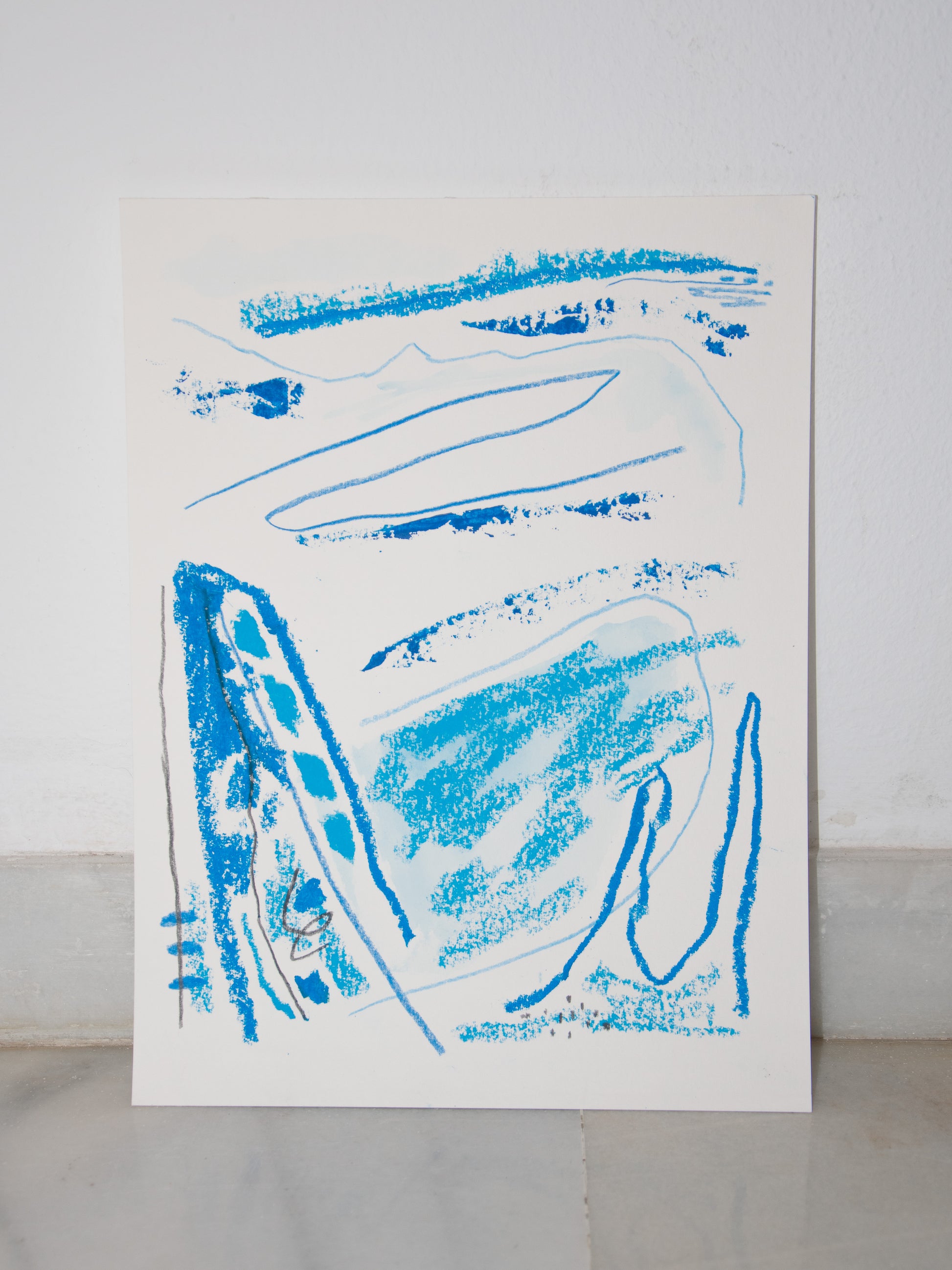 The rough oil pastel surface and lonely lines embodies life's moments when clarity gives way to question marks.